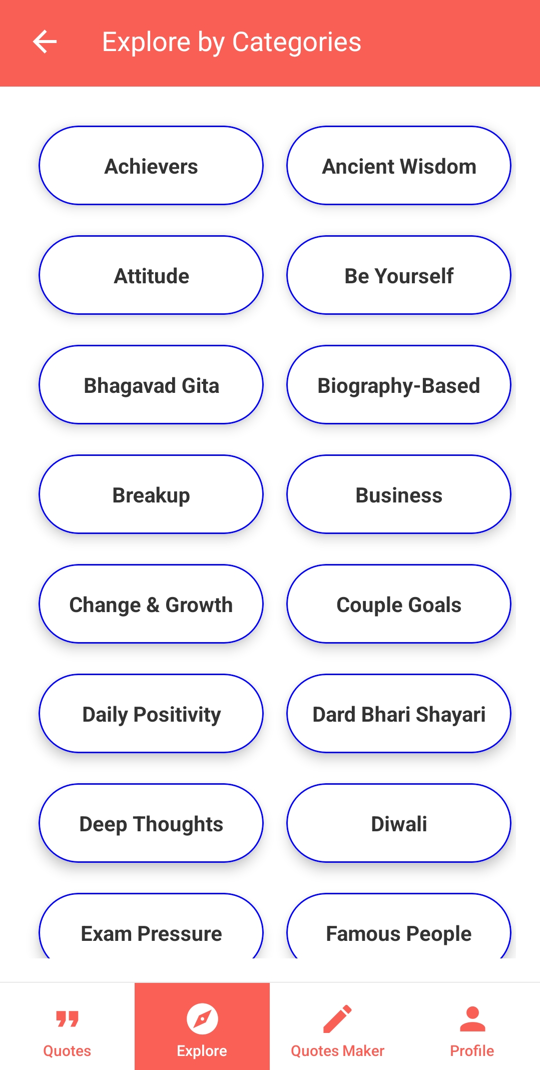 Explore a wide range of powerful and uplifting quote categories designed for every mood, moment, and mindset: