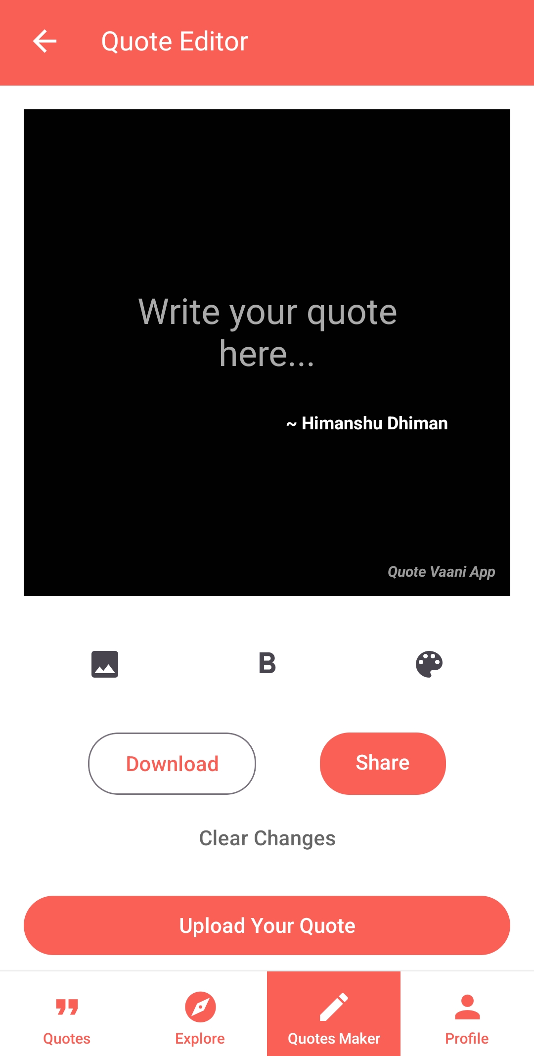 With the help of this app you can create your quotes using your photos or other backgrounds and download it.